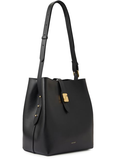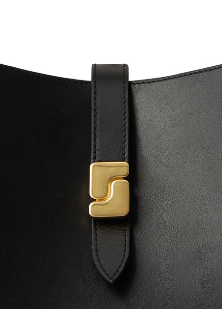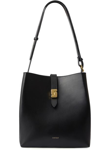 Reveal Soeur's smooth leather shoulder bag, a refined accessory featuring a single handle and an adjustable thin strap for versatile styling. The gold clasp and gold-finish details highlight the front logo, creating a polished look that seamlessly blends sophistication with everyday practicality.