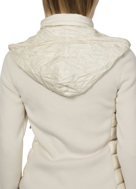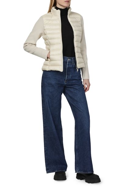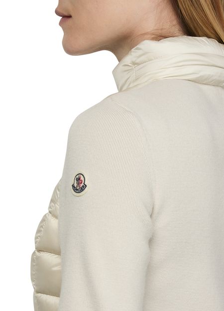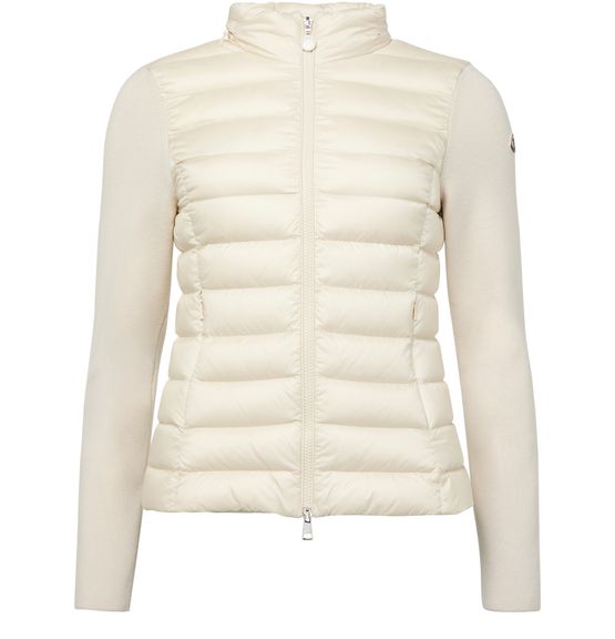 Moncler's Bi-material jacket showcases a short, long-sleeved silhouette with a high neck for added warmth. Its zipper closure ensures a snug fit, while the padded texture offers exceptional insulation. With convenient side pockets, this puffer jacket combines style and functionality, perfect for braving chilly days in comfort.