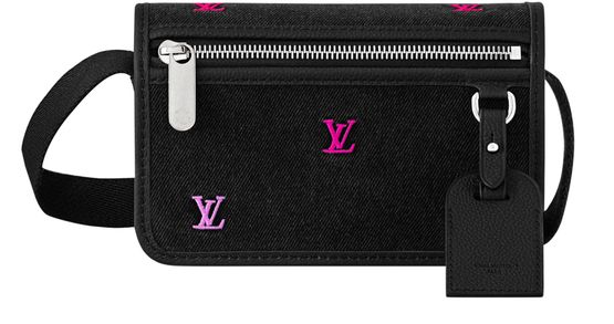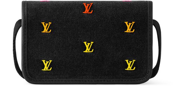 Made from LV Blason Denim, the Bosphore Wearable Wallet features colorful LV Initials embroidered on a black denim base. This visually striking small bag is also very practical, thanks to its zipped pocket on the front flap, giving quick access to often-used items. The strap can be adjusted for comfortable shoulder or cross-body carry.
