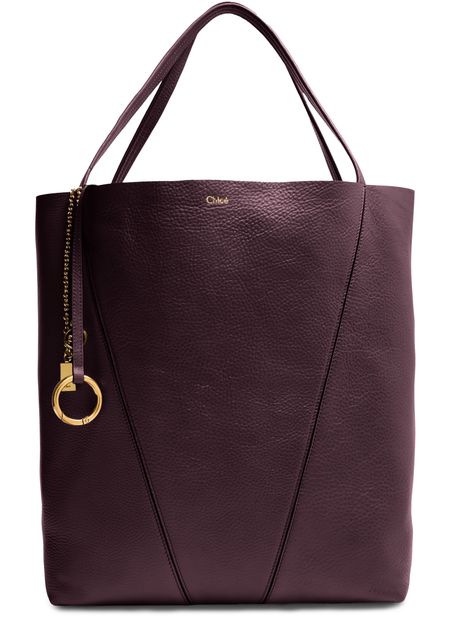 Reveal Chloe's Chloe Spin grained leather tote bag, crafted from supple grained leather with double handles for effortless carrying. Gold-tone charms and a front logo add a refined touch, while visible stitching and a spacious interior compartment ensure both style and practicality for your daily essentials.