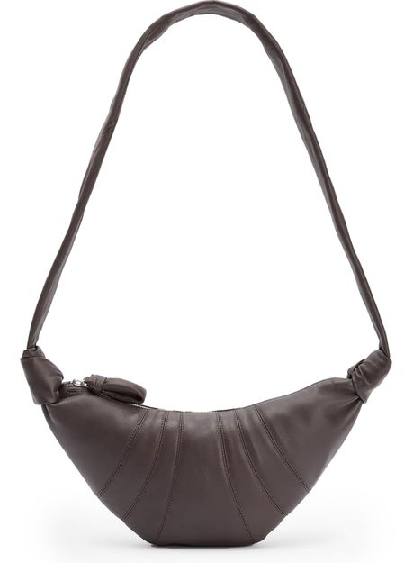 Introducing Lemaire's Croissant small bag, a perfect blend of style and functionality. Crafted from smooth leather, this versatile piece features a single handle and a wide strap, ideal for varied carrying options. Signature visible topstitching and a padded texture elevate its sophisticated design.