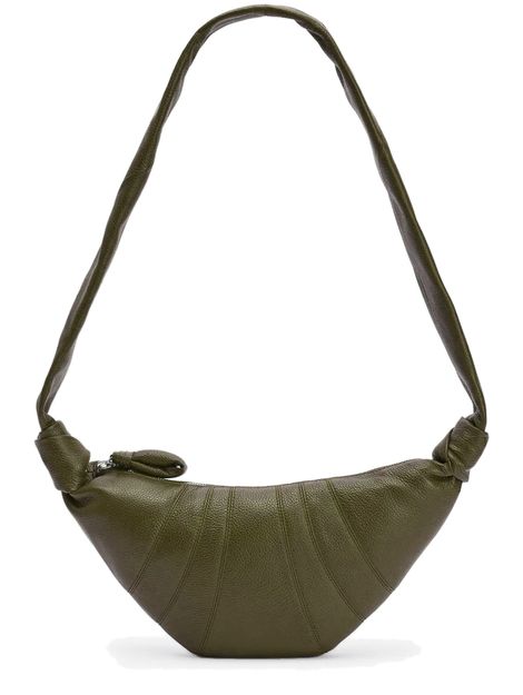 Reveal Lemaire's Croissant small bag, crafted from grained leather with a padded texture for a refined touch. The single handle and zipper closure offer effortless sophistication, while the contrast lining and open interior pocket ensure both style and practicality in every detail.