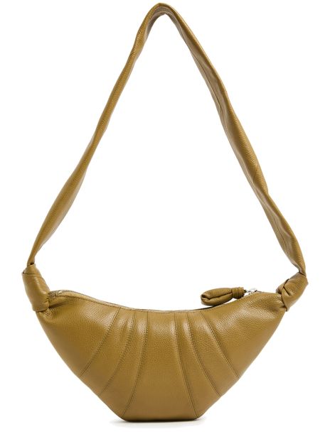 Reveal Lemaire's Croissant small bag, crafted from grained leather with a padded texture for a refined touch. The single handle and zipper closure offer effortless sophistication, while the contrast lining and open interior pocket ensure both style and practicality in every detail.