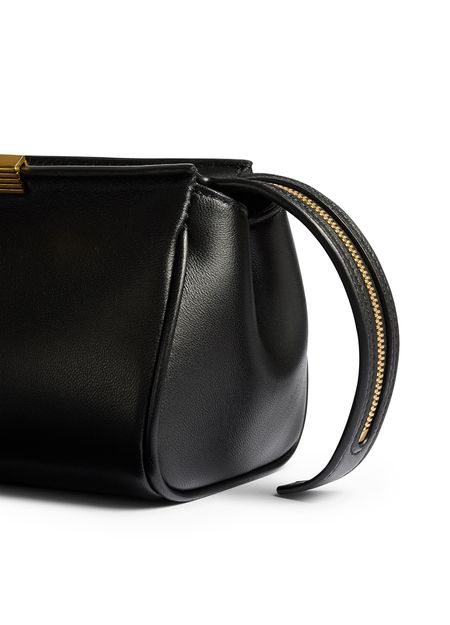 Reveal Khaite's Donna Evening clutch bag, crafted from smooth leather and adorned with a striking front logo. The gold finish adds a refined touch, making this clutch a statement piece for any occasion. Experience modern sophistication and impeccable detailing in every aspect of this design.