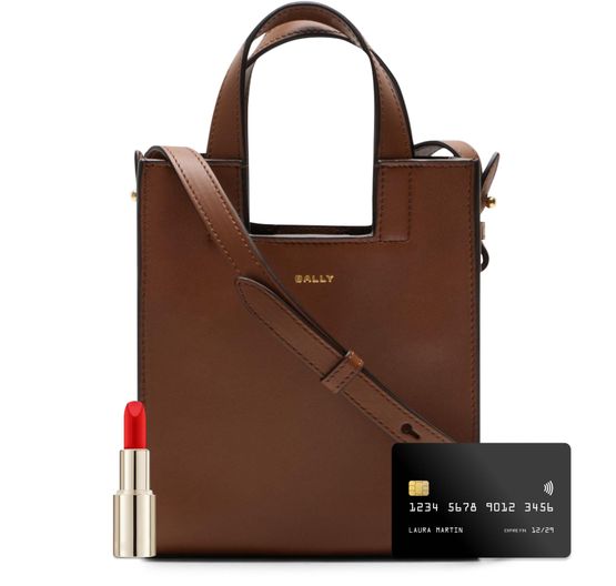 Reveal Bally's Easy XS tote bag, crafted from smooth leather with double handles and a thin, adjustable strap for versatile carrying. The front logo in gold letters and visible stitching add a refined touch, while gold-finish details complete this modern, functional accessory.