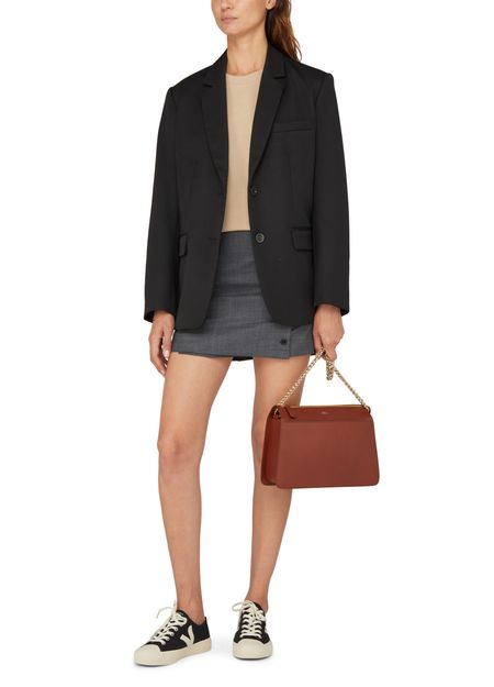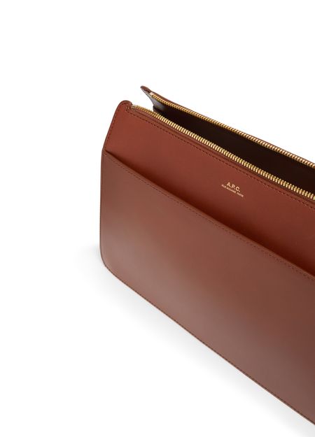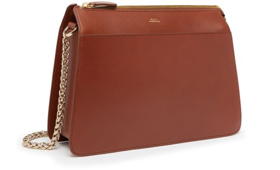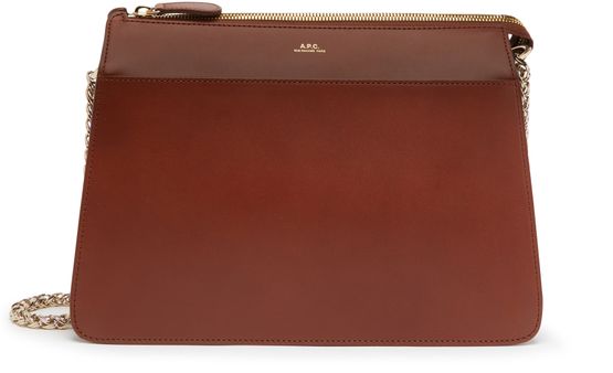 APC's Ella Chain bag is a sophisticated and versatile accessory for any modern woman. Crafted from smooth leather, it features a chain strap and gold finish for a touch of elegance. The logo in gold letters on the front adds a subtle branding detail. The zipper closure ensures security, perfect for wearing on the shoulder.