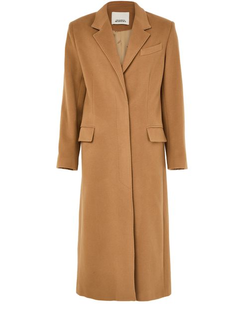 Discover Isabel Marant's Ellenita coat, a masterpiece in regular fit with a long silhouette. This single-breasted design elegantly combines embellished buttons and flap pockets. The long-sleeved coat with a classic collar ensures a timeless appeal, making it perfect for any occasion.