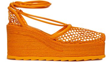 Bottega Veneta's espadrilles are made with micro-perforated fabric, providing breathability and style. The notched sole adds a modern touch, while the ankle detail offers a secure fit. Contrast details add a subtle pop of interest to this sleek and versatile footwear option. Ideal for casual and dressy occasions.