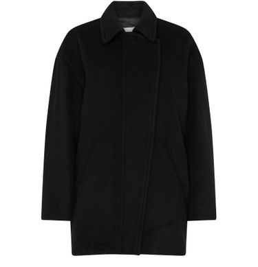 Isabel Marant's Eveline coat showcases a classic short silhouette with a notched collar and long-sleeved design. Side welt pockets add practicality, while the logo at the back label subtly highlights its premium quality. This overcoat is perfect for layering, effortlessly combining style and comfort for any occasion.