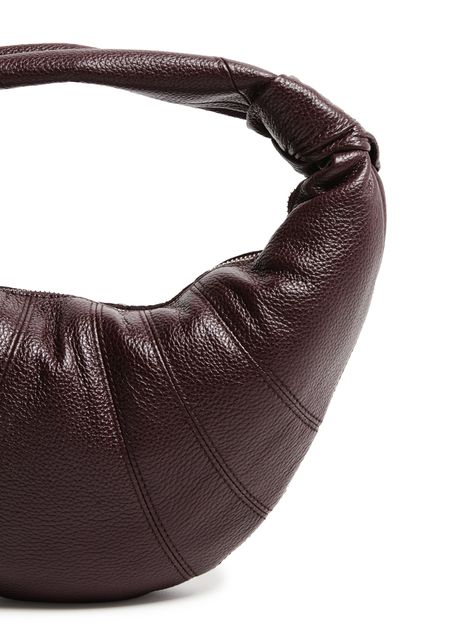 Reveal Lemaire's Fortune mini croissant bag, crafted from grained leather with a padded texture and visible topstitching. The single handle and zipper closure offer refined practicality, while the contrast lining and open interior pocket add a modern touch to this sleek shoulder bag.
