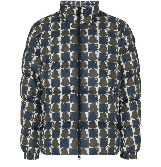Moncler's Gregale puffer jacket showcases a high neck and long-sleeved design, perfect for chilly days. With a stylish zipper closure and an all-over print, it combines functionality and fashion. The appliquéd logo adds a touch of elegance, while the logo at the back label highlights its premium craftsmanship.