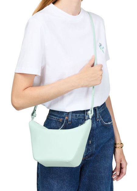 Discover Loewe's Hammock Mini Hobo Bag, a masterpiece in smooth leather with a sophisticated silver finish. This bag offers a single compartment with a zipper closure and an adjustable thin strap for versatile wear. Embossed with Loewe's iconic logo and adorned with visible topstitching, it reflects timeless elegance.