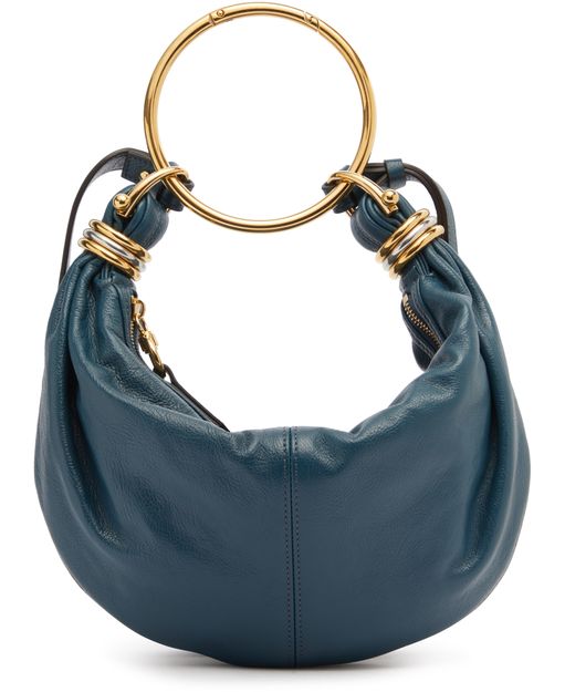 Chloé's Hobo bracelet bag showcases a stylish design with a secure zipper closure and a single compartment for essentials. Its gold finish adds a touch of elegance, while double handles and an adjustable strap allow for versatile wear. Interior patch pockets provide organization, complemented by visible topstitching for a refined look.