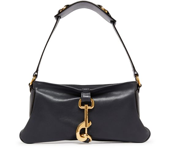 Chloé's Kerala 25 handbag showcases a sleek design with a zipper closure for secure storage. Its gold finish and engraved logo add a touch of elegance, while the visible topstitching highlights craftsmanship. With a single handle and wide strap, it can be stylishly worn on the shoulder for any occasion.