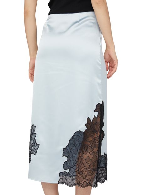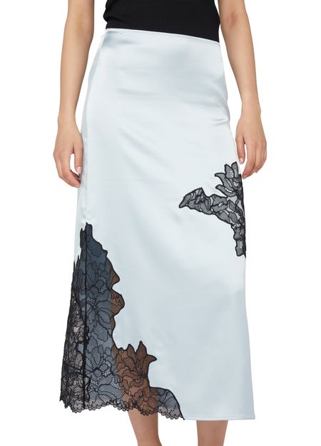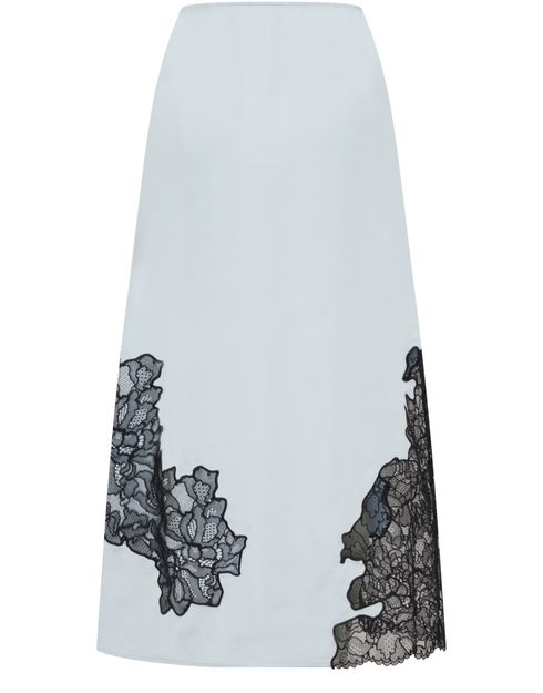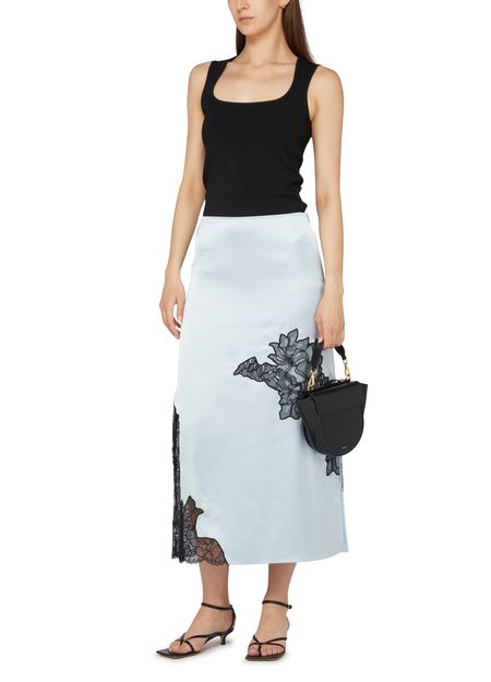 This midi A-line skirt from Ganni features delicate lace details for a feminine touch. Perfect for both casual and dressy occasions, this versatile piece can be dressed up or down with ease. The flattering silhouette and intricate lace design make it a must-have addition to any wardrobe.