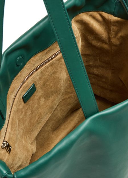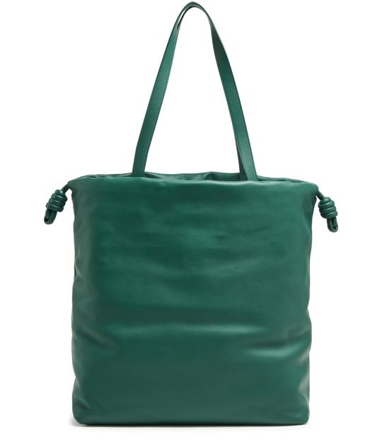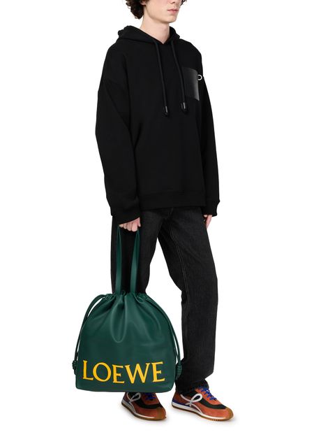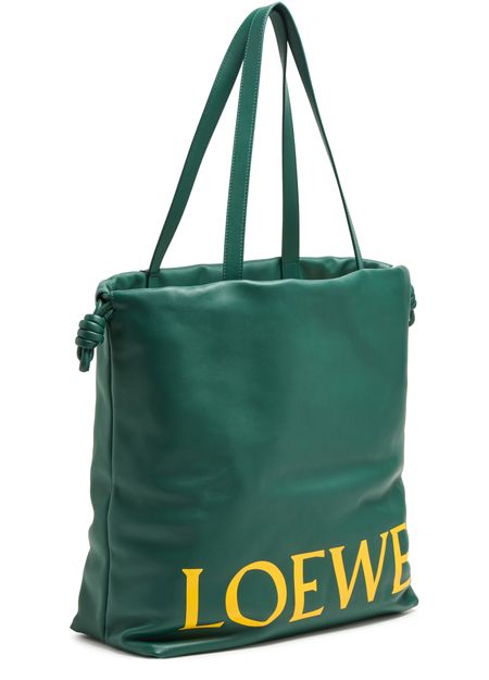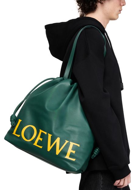 Loewe's Large Flamenco in nappa calfskin leather is a stylish shopper bag, worn on the shoulder or carried by double handles. Its magnetic closure secures a spacious single compartment, while the zippered interior pocket keeps essentials organized. Visible topstitching and a printed logo add a touch of elegance.