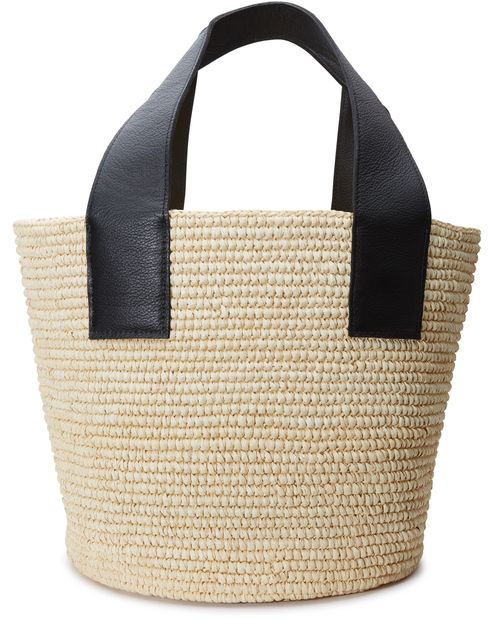 Featuring two large, contrasting straw handles, this large straw bag by Sensi Studio is a piece with a clean, uncluttered design. For a modern look.