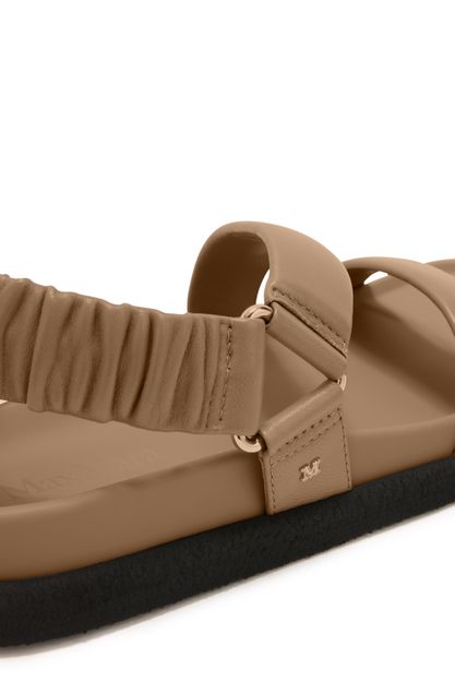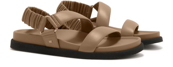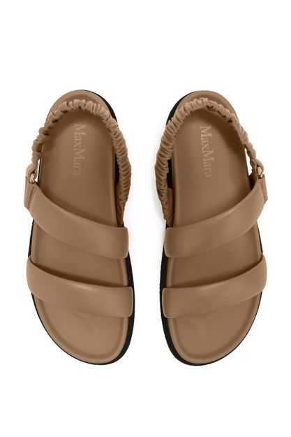 Reveal Max Mara's leather sandals with a modern open round toe and a secure ankle strap. The thick contrasting sole and wide straps ensure comfort and stability, while the discreet logo on the inside adds a refined touch. Perfect for elevating everyday style with effortless sophistication.