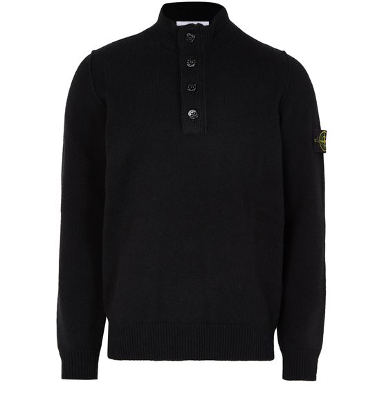 Reveal Stone Island's logo patch sweater, a masterpiece in modern style. This slim fit top features a mockneck and long cuffed sleeves, offering a sleek silhouette. The ribbed texture and button fastening add sophistication, while the embroidered logo on the side enhances its unique appeal.
