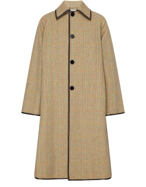 Bottega Veneta's Long ample-fit coat showcases a sophisticated checked pattern, perfect for layering. Its long-sleeved design and front buttoned closure offer both style and comfort. The button fastening adds a touch of elegance, while the logo at the back label subtly highlights the brand's commitment to luxury and craftsmanship.