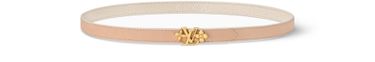 Slim and stylish, the LV Gram Vernis 15mm Reversible Belt pairs Monogram embossed leather with sumptuous patent cowhide in a soft pastel palette. The gold-finish metal buckle features the LV Initials flanked by two different Monogram Flowers for a graphic yet feminine signature touch. A jewel-like look for a versatile, elegant belt.