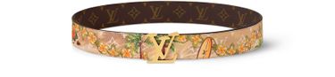 The pre-fall 2024 menswear collection follows a dandy sailor’s peregrinations as he navigates the globe. This LV Tag 40mm Reversible Belt is a memento of his sojourn on a tropical island paradise, with one side embellished with one of three vibrant surf-inspired motifs, and the other featuring the iconic Monogram. A gold-finished LV Tag buckle completes this standout accessory.