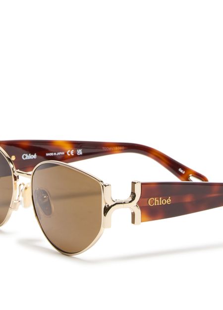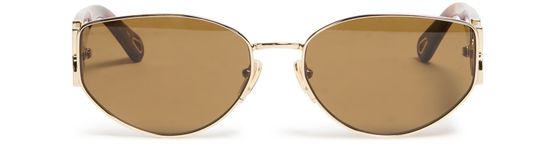 Reveal Chloe's aviator sunglasses, a perfect blend of style and sophistication. The gold-tone temples and thick design add a touch of elegance, while the tinted lenses offer a chic look. With a logo on the temples, these sunglasses are a statement piece for any fashion-forward individual.