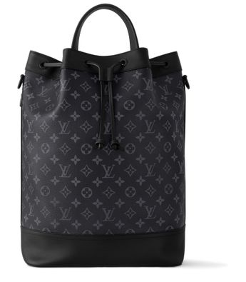 The Maxi Noé Sling bag in Monogram Eclipse canvas fuses functionality with contemporary style, thanks to its drawstring closure, rounded shape, and comfortable textile strap. Its top handle, multiple D-rings, and an adjustable strap allow it to be carried by hand, on the shoulder as a tote, or on the back as a sling.
