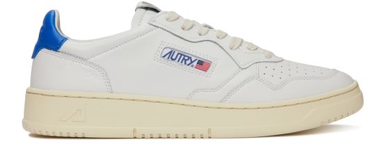 Autry's Medalist sneakers are leather sneakers with smooth leather, lace-up shoes, round toe, graphic cut-outs, logo on the tongue, logo on the side, and thick outsole.