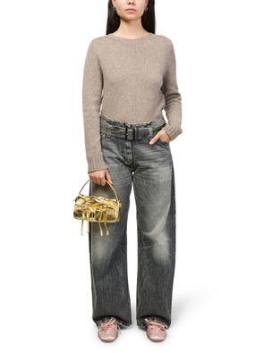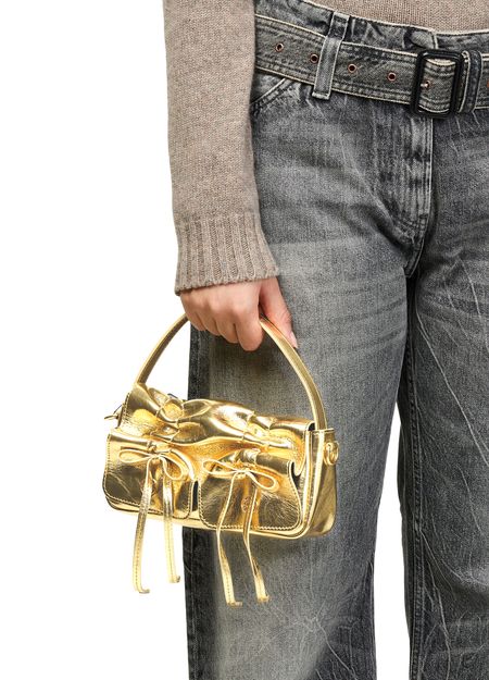 Reveal Acne Studios's micro metallic multi-pocketed bag, crafted from metallic leather with a sleek single handle and a thin, detachable strap. Visible stitching and a magnetic flap closure add modern flair, while the interior pocket ensures practical organization for your essentials.