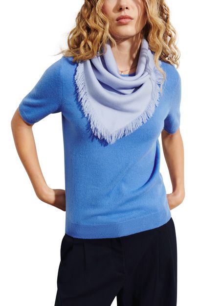 Reveal Bompard's mini twill square scarf with fringed trim, a refined accessory that brings a fresh twist to any ensemble. The delicate fringed edges and smooth twill fabric offer a contemporary accent, making this scarf a versatile choice for elevating your everyday style.