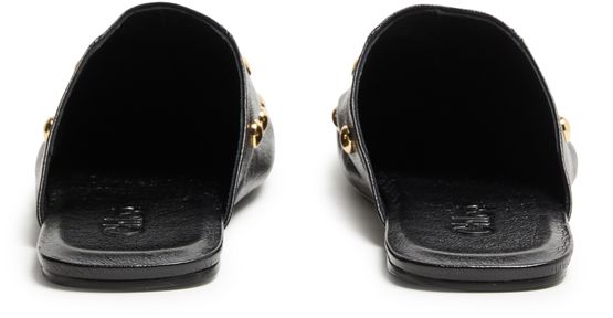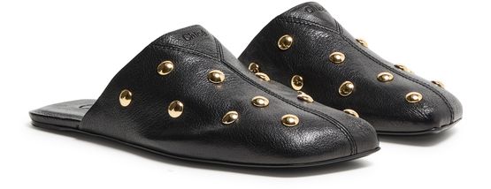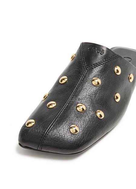 Reveal Chloe's mules with decorative touches, crafted from grained leather and finished with a low, flat heel. The closed square toe and visible blanket stitching add a refined edge, while gold-finish studded details and a leather insole ensure both comfort and standout appeal.