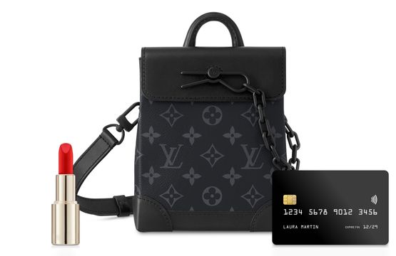 The new nano-sized Steamer bag updates a timeless Louis Vuitton signature with a modern masculine aesthetic. Styled in the House’s iconic Monogram Eclipse canvas, it features heritage details like trunk-inspired reinforced corners and a Steamer-style chain in sleek black metal. On-trend and elegant, it’s also user-friendly, with multiple carry options and a secure magnetic flap closure.