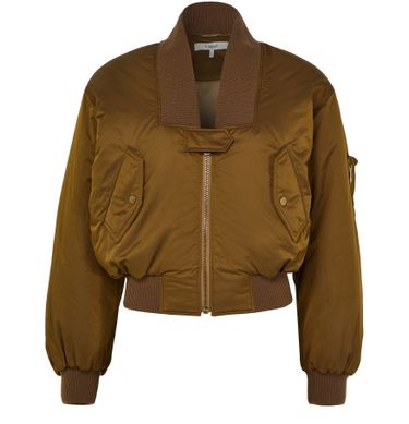 Reveal Chloe's nylon bombers, a masterpiece of contemporary fashion. With a regular fit and short length, this long-sleeved jacket features a high neck for added elegance. The zipper closure ensures practicality, while flap pockets offer convenience. Its padded texture adds a touch of refinement, perfect for any modern wardrobe.