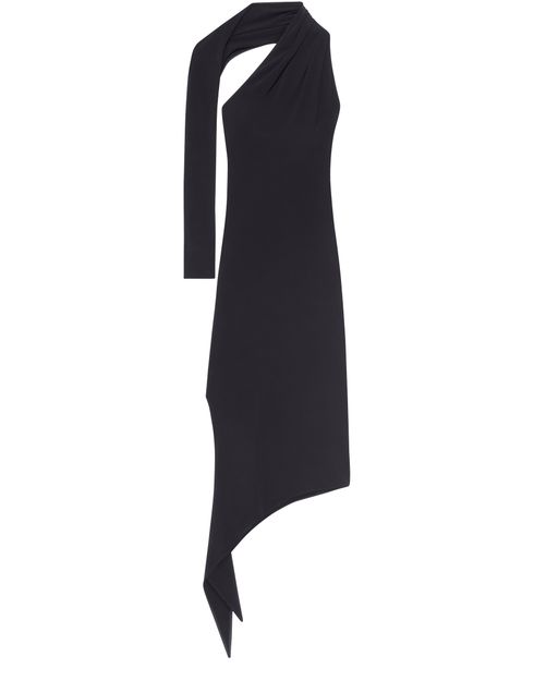 Reveal Courreges's bare shoulder midi dress, a statement piece defined by its asymmetric cut and draped detail. The long sleeves and exposed neckline create a striking silhouette, while the midi length offers refined versatility for day or evening wear. Experience modern sophistication in every detail.