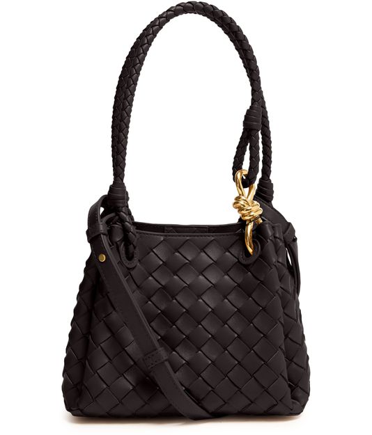 Reveal Bottega Veneta intrecciato shoulder bag, crafted with the iconic weaving technique and finished in supple leather. Double handles and a thin, adjustable strap offer versatile carrying options, while the gold finish and large interior compartment add a refined, modern touch.
