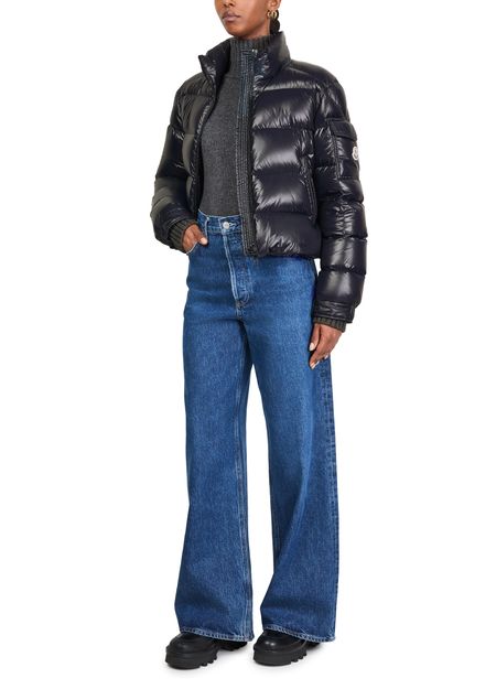 Indulge in Moncler's Petra down jacket, a perfect fusion of style and functionality. With a regular fit and short length, it boasts a padded texture for a modern silhouette. The zipper closure and side pockets add practicality, while the triangle logo enhances its chic appeal, perfect for versatile styling.