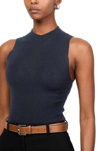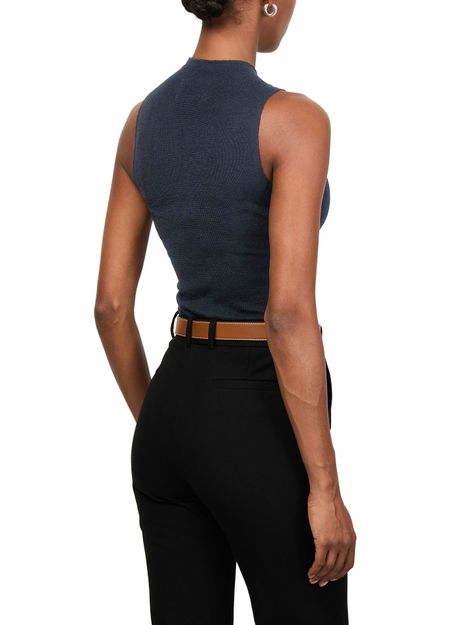 Reveal Bompard's cashmere and silk tank top, a sleeveless masterpiece with a mockneck that exudes modern elegance. Crafted with ribbed material, this regular fit piece offers a sleek silhouette, perfect for layering or wearing solo. Its versatile design makes it a staple for any wardrobe, effortlessly transitioning from day to night.