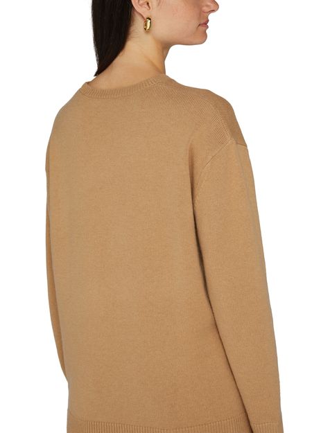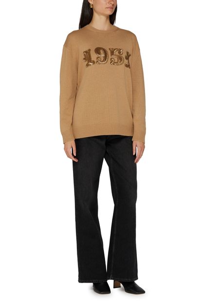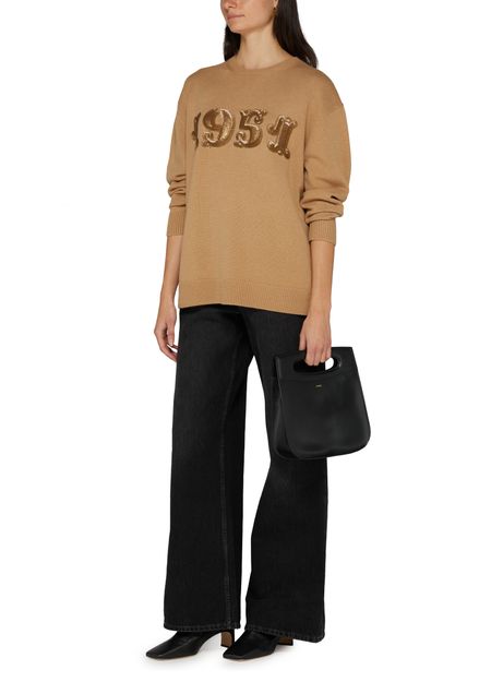 Max Mara's Plata 1951 sweater showcases a regular length, long-sleeved silhouette with a classic crew neck. Its understated elegance is accentuated by the logo at the back label, making it a versatile piece for any wardrobe. Perfect for layering or wearing solo, it embodies timeless sophistication and comfort.