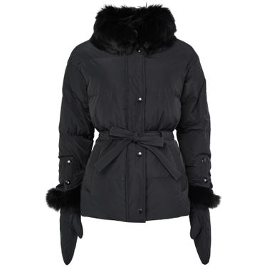 Introducing Yves Salomon's puffer jacket with a fox fur collar, a masterpiece of modern elegance. This regular fit, short-length coat features a padded texture and button fastening, complemented by side pockets for practicality. The long sleeves and fur detail add a touch of sophistication, making it perfect for any occasion.