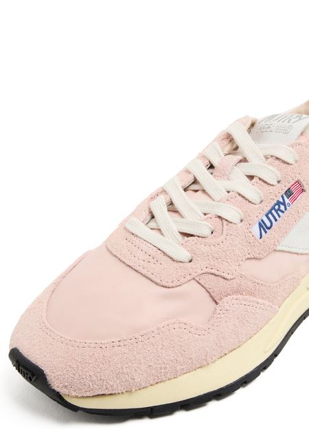 Autry's Reelwind low-top sneakers feature a closed, round toe design with a logo on the tongue and appliquéd logo at the back. The printed logo on the side adds a stylish touch, while the patch detail adds a unique element to these trendy sneakers.