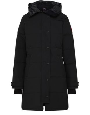 Shelburne parka is a high-quality winter piece designed to resist temperatures from -10°C to -20°C. It features a non-removable and adjustable hood, quilted finish, and backpack straps inside. The parka also includes a multimedia interior pocket, two external fleece-lined hand warmer pockets, and adjustable rib knit cuffs for added warmth and comfort.