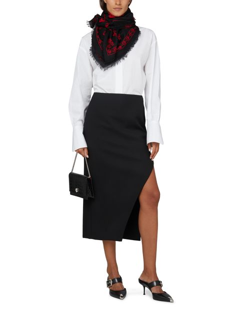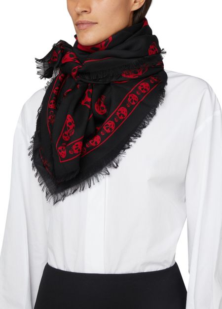 Discover the timeless elegance of Alexander McQueen with the Skull Orchid scarf. This luxurious accessory features a subtle monogram logo print along the edge, adding a touch of sophistication to any outfit. Crafted with raw edges, this scarf exudes a modern and edgy vibe, making it a must-have for fashion-forward individuals.