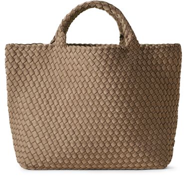 Reveal Naghedi's St Barths large tote, crafted in open weave for a contemporary edge. The double handles offer versatile carrying, while the spacious single compartment ensures effortless organization. This tote blends modern design with practical elegance, making it an essential for refined, everyday style.
