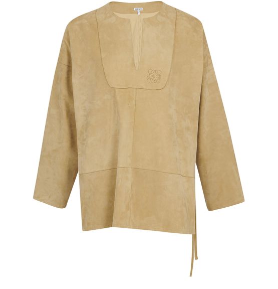 Loewe subtly combines comfort and elegance in this long suede shirt. The Spanish brand offers a wide cut and flared sleeves for this piece, and it features a plunging neckline adorned with a plastron bearing the Loewe signature. All of which gives the look a deliciously ethnic feel. Wear it with tight trousers and moccasins or with a pair of the brand's iconic loose trousers...