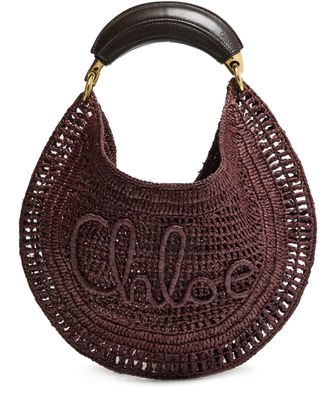Elevate Chloé's Summer Banana bag - a stunning blend of elegance and function. Hand-carried or worn on the shoulder, this basket-style accessory features a magnetic closure, visible topstitching, and an engraved logo. Its gold finish, single compartment, thin strap, and single handle complete the modern look.