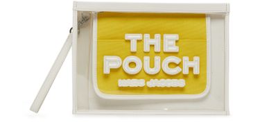 Marc Jacobs's Clear large pouch boasts a sleek design with a secure zipper closure. Its single compartment offers ample space for essentials, while the front logo adds a touch of sophistication. Perfect for organizing your belongings, this pouch effortlessly combines style and practicality for everyday adventures.
