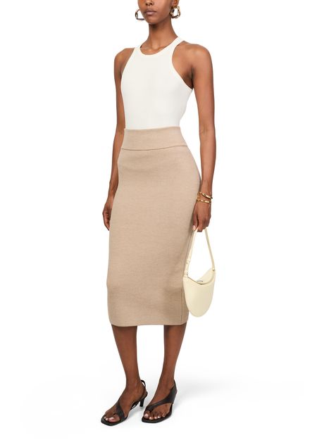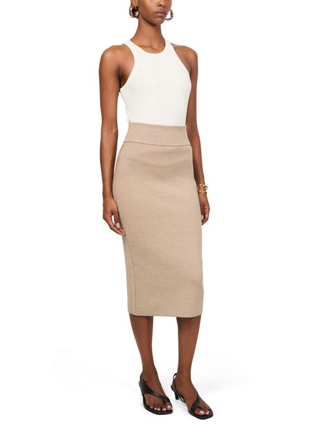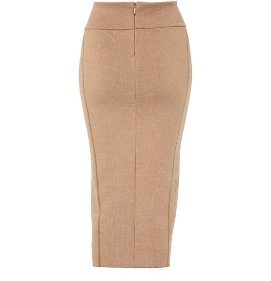 Reveal Jacquemus's The Doppio knit skirt, a knee-length masterpiece with visible stitching that adds a modern touch. The back zipper closure ensures a sleek fit, making it perfect for any occasion. This versatile piece transitions effortlessly from day to night, offering both style and comfort.