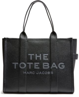 The Marc Jacobs Large Leather Tote Bag is a stylish grained leather shopper with a versatile design. It features a detachable strap and two handles for easy carrying options. The bag has a spacious interior compartment with an interior pocket for organization. It is adorned with a front logo and secured with a zipper closure. This bag can be worn in the hand or on...