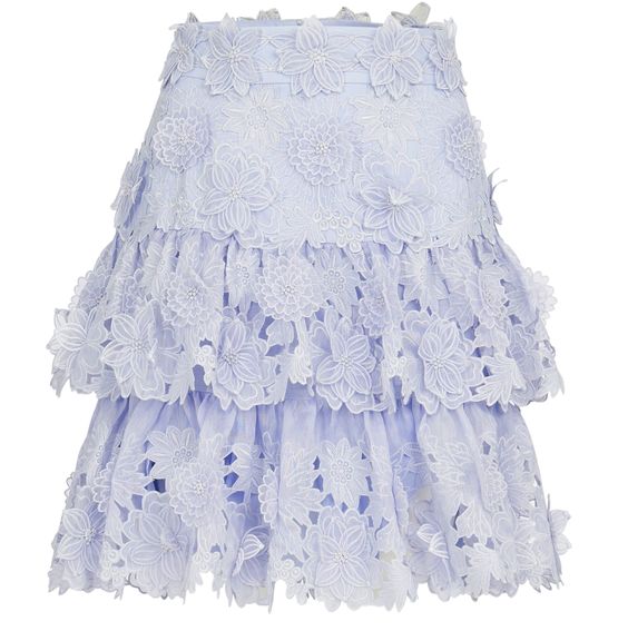Description : Short dress with two frills, floral pattern, all-over embroidery, fitted waist.